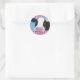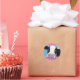 Cute whimsical cow stickers. Use them as stickers or brighten up someone's mail and use them as envelope seals. Design features a whimsical illustration of a black and white cow, with brown eyes, peering over pink stripes. Artwork © Lisa Marie Robinson. All Rights Reserved.
