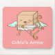 A cute cube dressed in white underwear, a pair of light blue wings on its back, is holding on to a bow and love arrow. Matching text reads "Cubic's Arrow" which is a funny pun wordplay on cupid.
