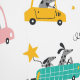 Cute Whimsical Dogs Cars Modern Kids Pattern Wallpaper