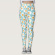 Cute leggings with a whimsical pattern of egg yolks in teal blue and yellow.