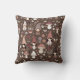 A cottage core folk art style throw pillow with cute little fairy gnomes, mushrooms, flowers in mauve, brown and burgundy. A sweet theme for a girl's room.