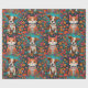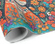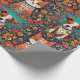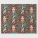 Folk art cats and dogs surrounded by cute whimsical folk art flowers birthday wrap.