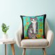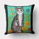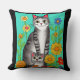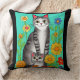 A cute pillow for cat lovers. Folk art style colourful cat, kitten and flowers, AI generated artwork. generativecontent
