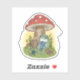 "A charming cottagecore illustration of a happy frog knitting a blue scarf while sitting outside its whimsical mushroom house. This cozy, nature-inspired design captures a moment of peace and creativity, perfect for adding a touch of whimsy and charm to any product, from apparel to home decor."