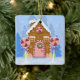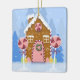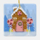Adorable blue Christmas ornament featuring a whimsical gingerbread house .