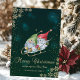 Gnome, snowflakes and sleigh on green background make this a perfect Christmas or holiday greeting card for friends and family.