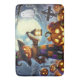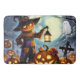 Cute, Whimsical Halloween scarecrow & pumpkins Bath Mat