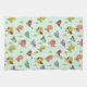 with a pattern of hand-drawn whimsical birds. Cute little green pine trees between them. Mint green background.