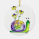 Cute Whimsical Happy Snail with Yellow Flowers Ceramic Ornament