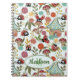Cute Whimsical Ladybugs Mushrooms Flowers Monogram Notebook