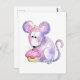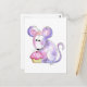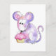 This is an original mixed media painting of a whimsical purple mouse with a pink cupcake.