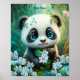 Cute Whimsical Panda Blue Flower Garden Nursery Poster