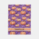 Snuggle up with this cool, cute fleece blanket featuring a whimsical pumpkin pattern on a purple background. Perfect for all ages, it's colourful and lovely, and can be personalised with your name.