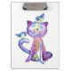 Cute Whimsical Purple Cat with Birds Clipboard