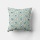 A pillow with an adorable pattern. Colourful rainbows in a pink, blue and green colour scheme.