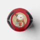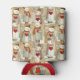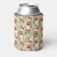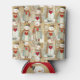 A cute and whimsical can cooler featuring illustrations of snowmen carrying red hearts. A fun way to keep your drinks cool.