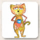 Cute Whimsical Tired Cat Drinking Coffee Coaster