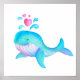 Cute whimsical whale heart spurt kids nursery art poster
