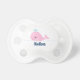 Custom designer baby pacifier features a beautiful and sweet baby whale illustration and can be personalised with your baby's name or any text of your choice.