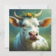 Cute White Ai Cow with Horns and Flowers