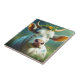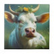 Cute White Ai Cow with Horns and Flowers Ceramic Tile