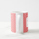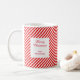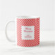 Cute white and red striped Coffee Mug. It’s very easy to customise, with details of your personal details.