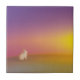 Cute White Bunny Rabbit on Grassy Hill at Sunrise Ceramic Tile