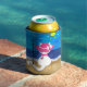 A fun cat lovers can cooler featuring a cute white cat in a pink bonnet sitting on a sandy beach and ocean waves enjoying the sunshine! Customise this fun cat can cooler for your favourite cat lover!