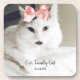 Show off your pet love with these Cute White Cat Custom Text beverage coasters. You can pick your very own cat photo or keep the adorable kitten as shown on product. The customisable text is "our family cat" followed by personalised name. Makes a great cat lover gift idea!