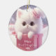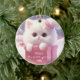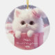 Cute White Cat in a box Christmas Personalised Ceramic Ornament