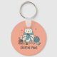 Cute White Cat Knitting with Blue Yarn Coral Art Key Ring