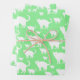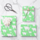 Cute White Cat Pattern, Green Background Wrapping Paper Sheet