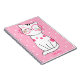 This girly , cute and modern notebook design features a cute white cat cartoon with eyeglasses on pink and white polka dots pattern background and has a place for you to add your name in lovely typography. Personalise this product by adding your name at the bottom . this will be the perfect feline stationery design for any cat lover.