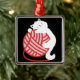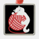 Cute white cat with yarn ball metal ornament