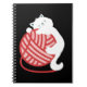 Illustration of a cute sleeping white cat with pink and red yarn ball for everybody who loves cats