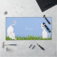 Cute White Cats with Flowers Desk Mat
