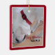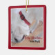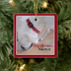 Cute White Dog Drinking Water Red Christmas Square Ceramic Ornament