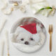 Cute White Dog in a Red Christmas Hat Paper Plate