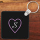 Cute White Dog Purple Hearts Frame Valentine's Day Key Ring