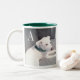 Cute White Dog Single Initial Green Two-Tone Coffee Mug