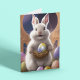 This Easter card has an image of cute white Easter bunny carry an Easter egg. Message inside can be customise. Perfect gift for Easter.