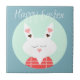 Cute white Easter bunny with pink hearts Ceramic Tile