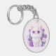 Cute White Fluffy Persian Cat with Morning Glory Key Ring