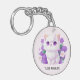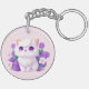 Cute White Fluffy Persian Cat with Morning Glory Key Ring