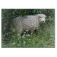 This awesome glass cutting board features a photograph of a cute fluffy sheep. The sheep is surrounded by wild flowers and long grass and is eating some leaves. It has a thick white coat of wool and a cute black nose.