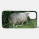 This pretty iPad case features a photograph of a cute fluffy sheep. The sheep is surrounded by wild flowers and long grass and is eating some leaves. It has a thick white coat of wool and a cute black nose.