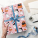Cute White Ghosts Pattern Pink Halloween Wrapping Paper