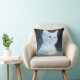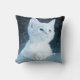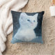 Pillow with an adorable photograph of a white short-haired kitten with bright blue eyes. Staring off into the distance.