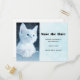 Save the date postcard with an adorable photograph of a white short-haired kitten with bright blue eyes. Staring off into the distance. Paws crossed in typical kitty cat fashion.