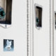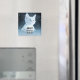 A magnet with an adorable photograph of a white short-haired kitten with bright blue eyes. Staring off into the distance.